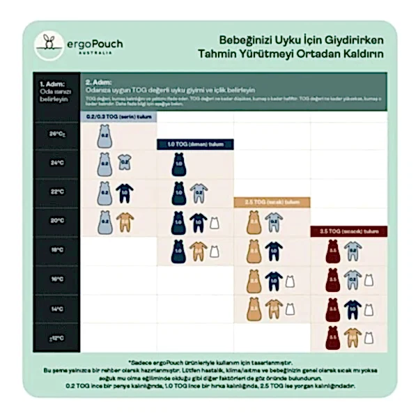 3.5 TOG Uyku Tulumumuz kış aylarında bebeğinizin terlememesi/üşümemesi için nefes aldıran, esnek, yumuşacık organik pamuktan üretilmiştir. 14-19°C arası oda sıcaklıklarında tek başına üst örtmeden kullanılabilir.