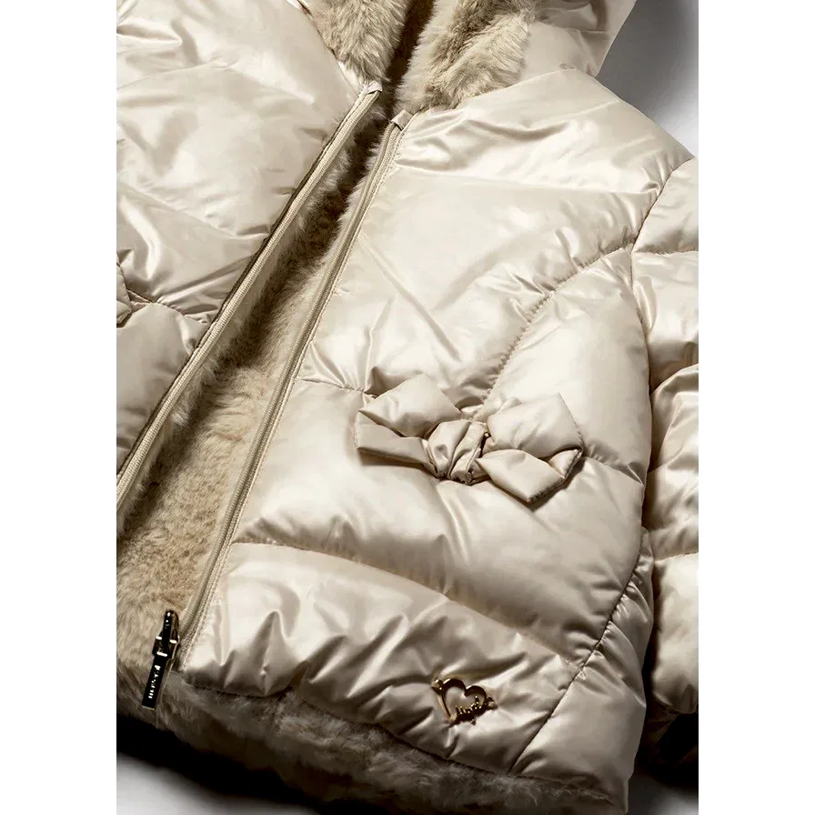 Mayoral Kışlık Kız Bebek Çift Taraflı Kapşonlu Kürklü Mont Bej