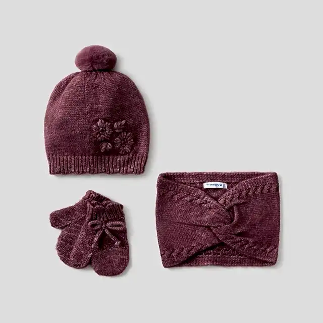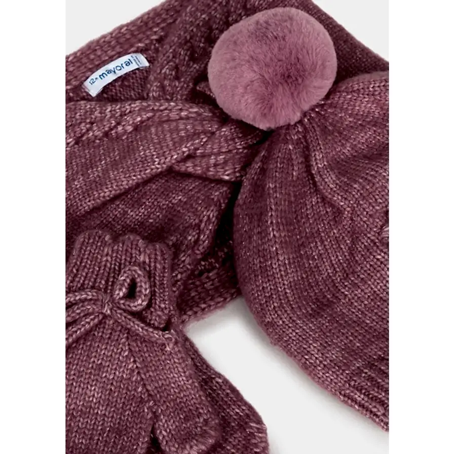 Mayoral Kışlık Kız Bebek Örme Atkı Eldiven Bere Set Koyu Pembe